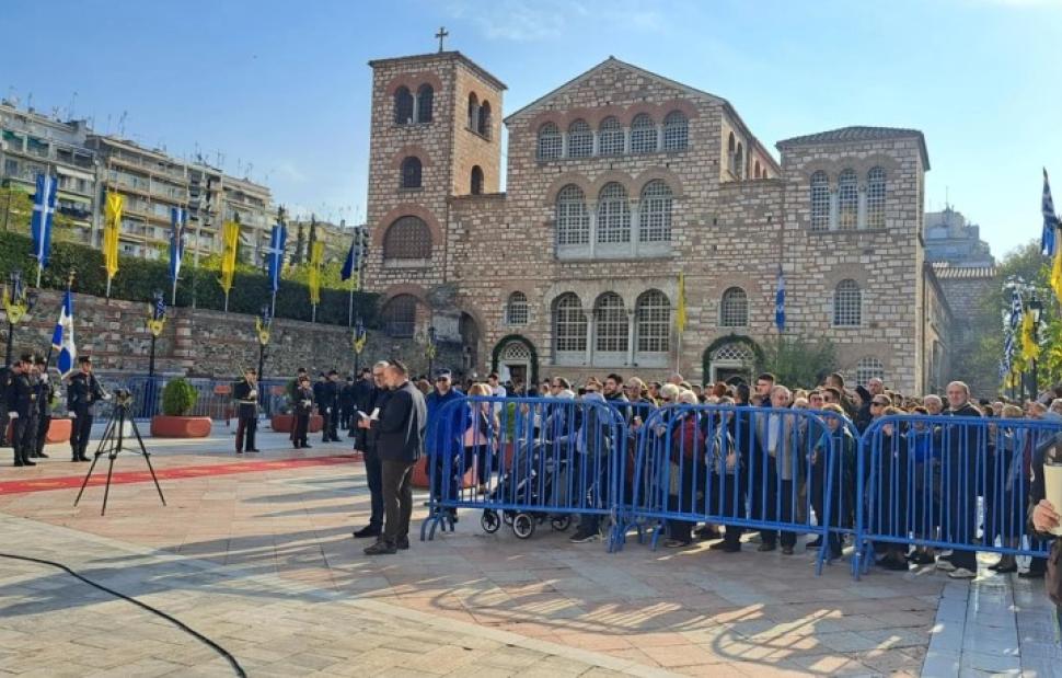 H Θεσσαλονίκη γιορτάζει διπλά σήμερα την επέτειο απελευθέρωσης της πόλης την 26η Οκτωβρίου 1912 και τον Πολιούχο της, Άγιο Δημήτριο. Δοξολογία θα πραγματοποιηθεί στον Ιερό Ναό του Αγίου Δημητρίου. Από νωρίς το πρωί εκατοντάδες πιστοί έσπευσαν στην εκκλησία ενώ ήδη κλείσει για όλα τα οχήματα η οδός Αγίου Δημητρίου.