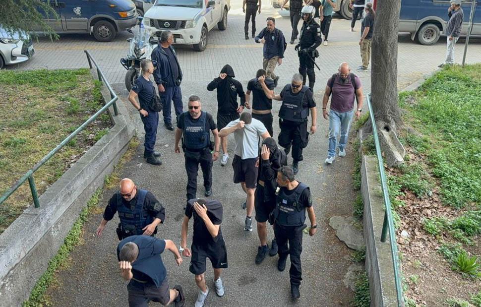 Στο Δικαστικό Μέγαρο Θεσσαλονίκης οδηγήθηκαν τα 28 μέλη ακροδεξιάς οργάνωσης τα οποία συνελήφθησαν χθες στη Θεσσαλονίκη, στο πλαίσιο μεγάλης αστυνομικής επιχείρησης.