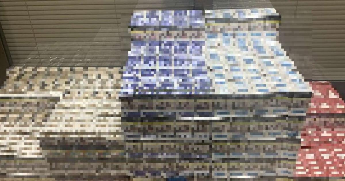 Ακολούθησε έλεγχος στις ως άνω αποσκευές, όπου εντοπίστηκαν συνολικά 3.000 πακέτα τσιγάρα, διαφόρων επωνυμιών, καθώς και 250 συσκευασίες καπνού μικτού βάρους 12,5 κιλών, τα οποία στο σύνολο τους δεν έφεραν ταινία ειδικού φόρου κατανάλωσης.