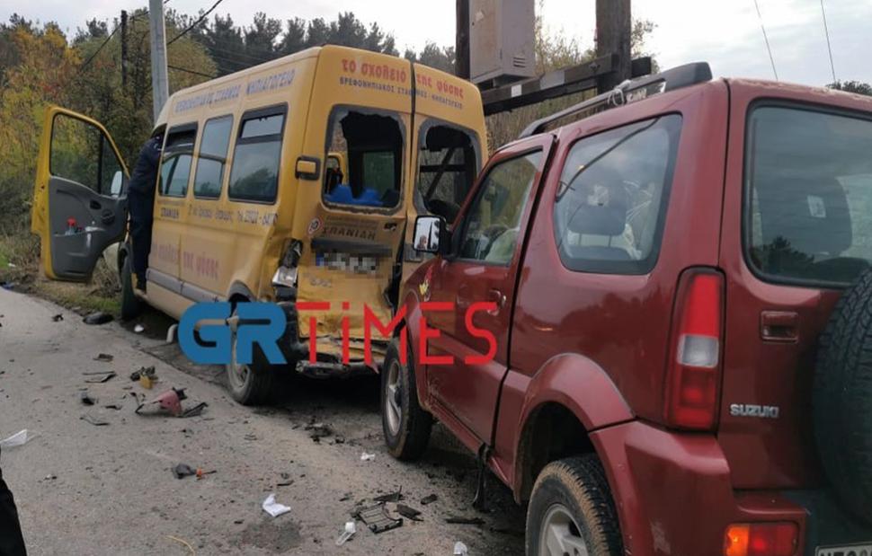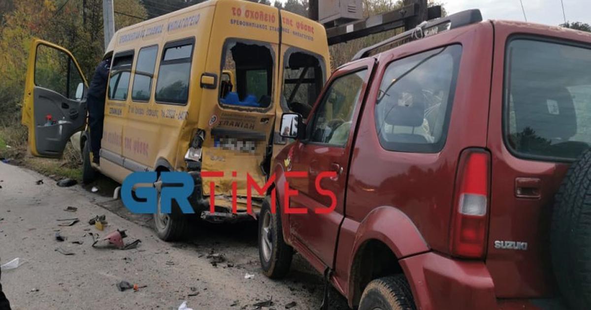 Όπως αναφέρουν οι πρώτες πληροφορίες τζιπ χτύπησε το σχολικό λεωφορείο που προπορευόταν, με αποτέλεσμα το σχολικό να βγει έξω από το δρόμο και να σταματήσει πάνω σε κολόνα.
