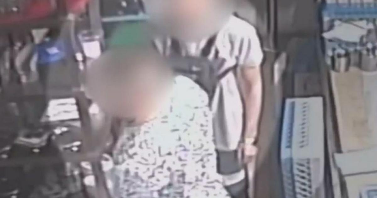 Κάμερα ασφαλείας του καταστήματος, κατέγραψε τους δύο ληστές να κρατιούνται χέρι χέρι πριν εισβάλλουν στο μαγαζί, ενώ διακρίνονται να κάνουν και τον σταυρό τους.
