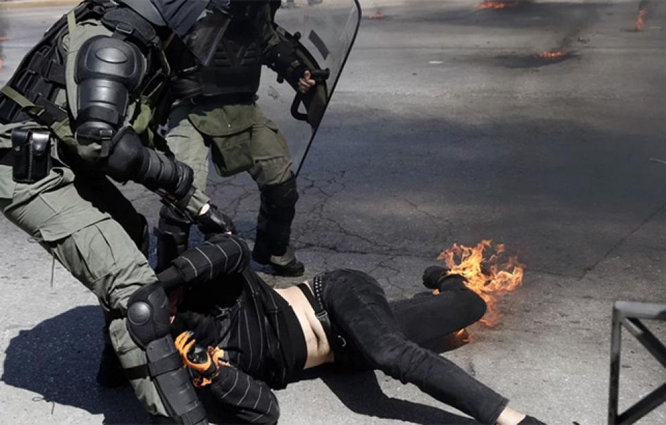 Ο διαδηλωτής έλαβε τις πρώτες βοήθειες από αστυνομικούς των ΜΑΤ, που έσπευσαν άμεσα στο σημείο. Ένας εκ των αστυνομικών, που κι εκείνος είχε δεχτεί μολότοφ, έσβησε τη φωτιά από το πόδι του νεαρού, χρησιμοποιώντας αντιπυρική κουβέρτα.