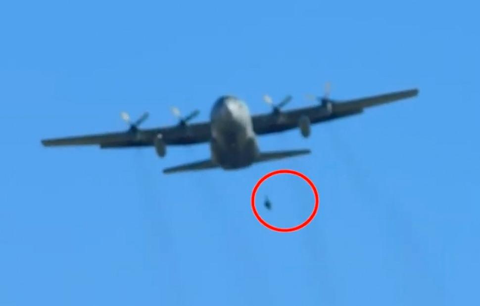 Ο πρώτος εκ των 40 αλεξιπτωτιστών έπεσε στο κενό από την πλαϊνη πόρτα του αεροσκάφους. Ωστόσο, ο ιμάντας δεν άνοιξε το αλεξίπτωτο, με συνέπεια ο άντρας να μείνει κρεμασμένος στον αέρα, σε αποσταση 4,5 μέτρων από το αεροσκάφος, καθώς αυτό είναι το μήκος του ιμάντα.