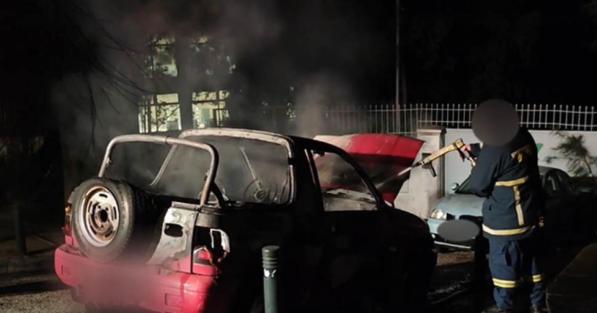 Σημειώνεται ότι από τη φωτιά προκλήθηκαν φθορές σε ένα ακόμη όχημα που ήταν σταθμευμένο στο σημείο.
