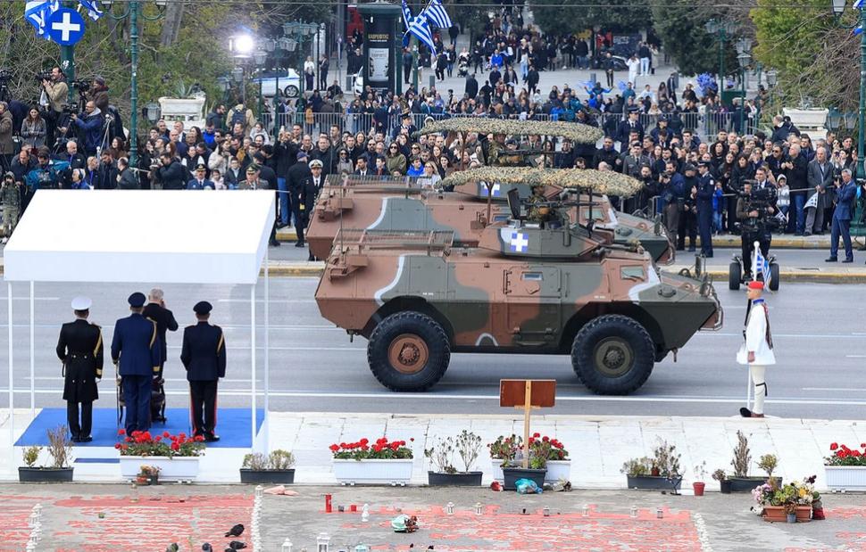 Οι εορταστικές εκδηλώσεις ξεκίνησαν επίσημα με 21 χαιρετιστήριους κανονιοβολισμούς από τον Λυκαβηττό, ενώ στις 10:55 ο Πρόεδρος της Δημοκρατίας, Κωνσταντίνος Τασούλας, κατέθεσε στεφάνι στο Μνημείο του Αγνώστου Στρατιώτη.