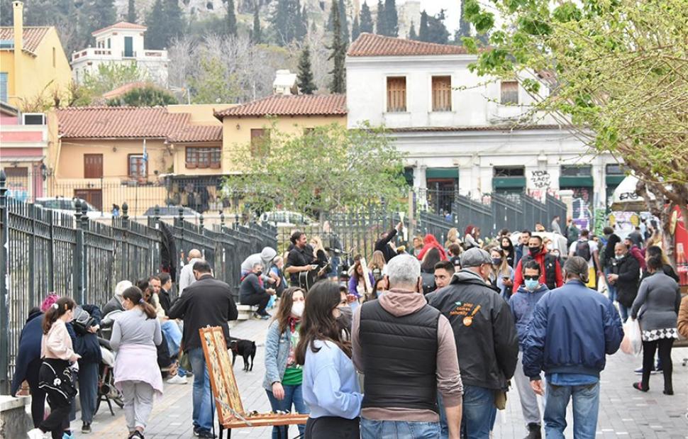 Στην Ερμού, το Μοναστηράκι και την Πλάκα, όπως μπορείτε να δείτε στις φωτογραφίες, πλήθος κόσμου κάθε ηλικίας κάνει τον περίπατό του. Στην πλειονότητά τους οι πολίτες φορούν τις απαραίτητες μάσκες.