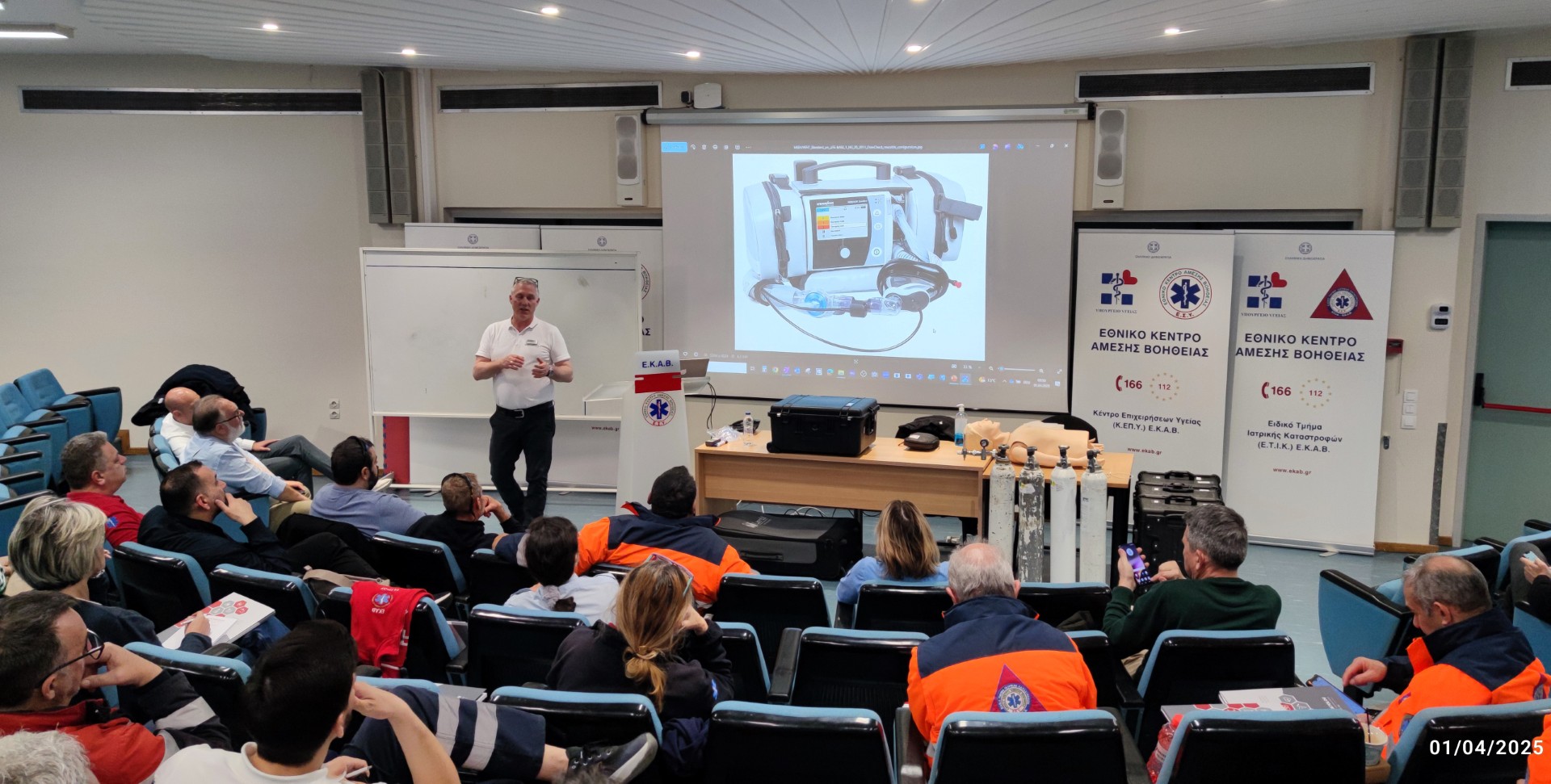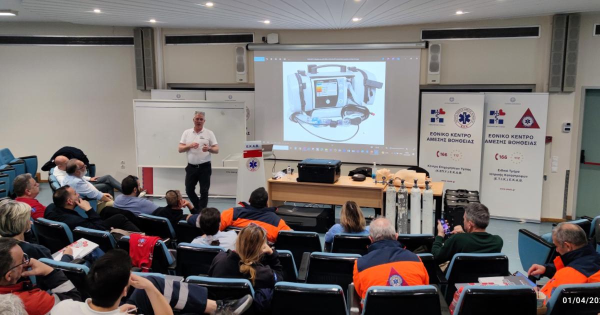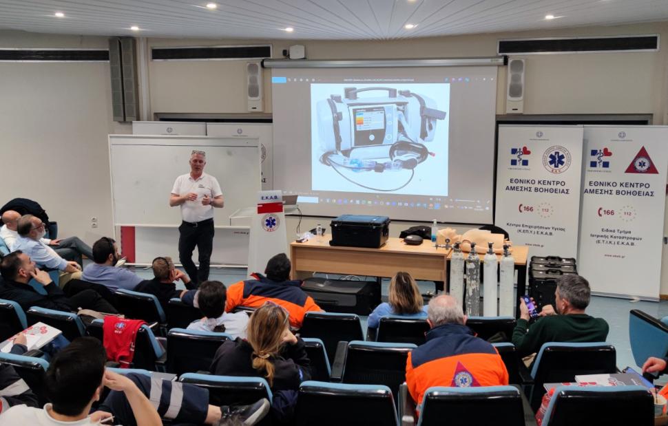 Δέκα γιατροί και περισσότεροι από τριάντα διασώστες του ΕΚΑΒ από όλη την Ελλάδα συγκεντρώθηκαν στις εγκαταστάσεις του Εθνικού Κέντρου Άμεσης Βοήθειας (ΕΚΑΒ) στην Αθήνα για τη συγκεκριμένη εκπαίδευση, τόσο θεωρητική, όσο και πρακτική σε περισσότερα γκρουπ ταυτοχρόνως. Τριάντα έξι ασθενοφόρα του Κέντρου θα είναι πλέον εξοπλισμένα με αυτούς τους σύγχρονους αναπνευστήρες.