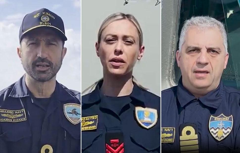«Σε κάθε θάλασσα, σε κάθε ορίζοντα κρατάμε άσβεστη τη δύναμη του ελληνισμού. Με πίστη στην αποστολή μας στεκόμαστε φρουροί της ειρήνης και της εθνικής κυριαρχίας. Μεταφέρουμε τη σημαία της Ελλάδας με υπερηφάνεια. Όπου υπάρχει γαλάζιο υπάρχει Ελλάδα, η Ελλάδα είναι παρούσα με ισχύ, χρόνια πολλά Ελλάδα» καταλήγει το βίντεο με τα στελέχη του Πολεμικού Ναυτικού.