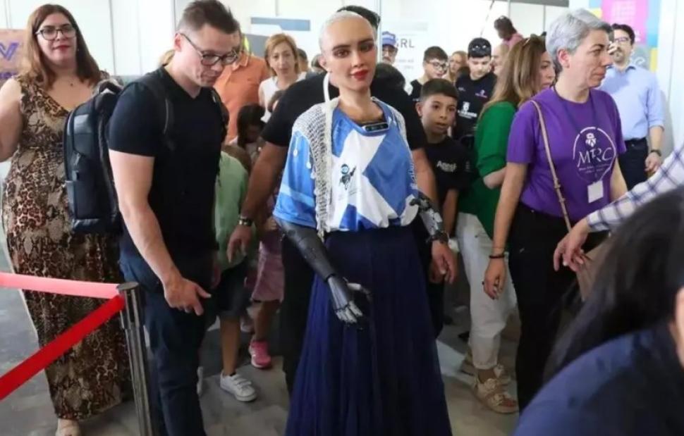 Η συνομιλία της Sophia με εκπροσώπους φορέων και δημοσιογράφους ήταν απολαυστική. Από τις συζητήσεις αυτές μάλιστα δεν έλειψαν τα ευτράπελα και οι επικές ατάκες.
