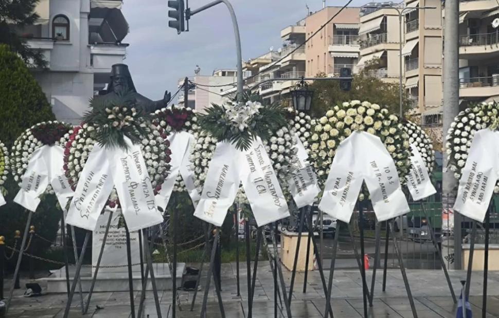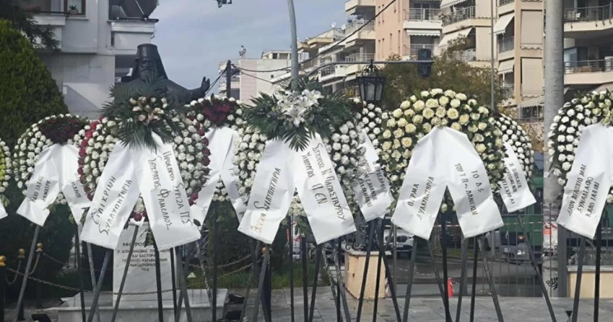 Μεταξύ των στεφανιών ήταν και αυτά του πρώην Πρωθυπουργού Κώστα Καραμανλή και του προέδρου του ΣΥΡΙΖΑ Σωκράτη Φάμελλου.