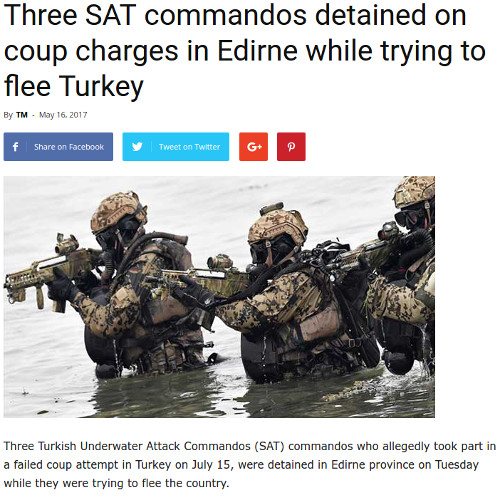 Τρία στελέχη των Τουρκικών Ειδικών Δυνάμεων συνελήφθησαν από τις γειτονικές αρχές κατηγορούμενοι για ενεργό συμμετοχή στο πραξικόπημα της 15ης Ιουλίου.