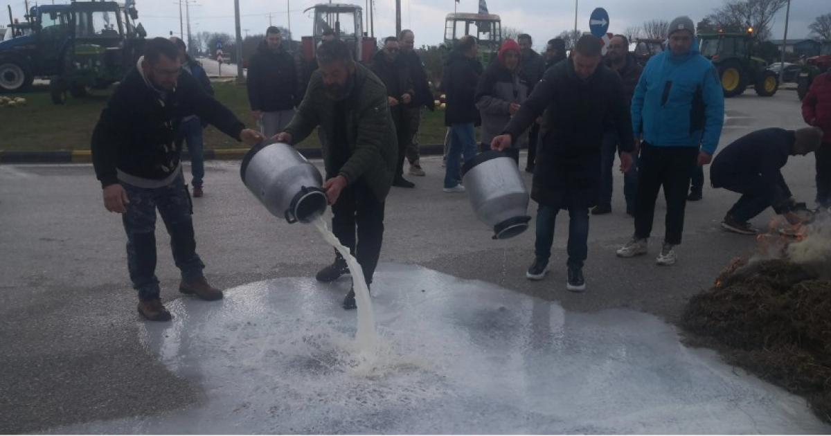 Αγρότες του μπλόκου Μεγαλοχωρίου στα Τρίκαλα, προχώρησαν το μεσημέρι σε συμβολικό αποκλεισμό του κόμβου Μεγαλοχωρίου. Οι αγρότες έριξαν γάλα στον δρόμο και έκαψαν μπάλες από άχυρα.