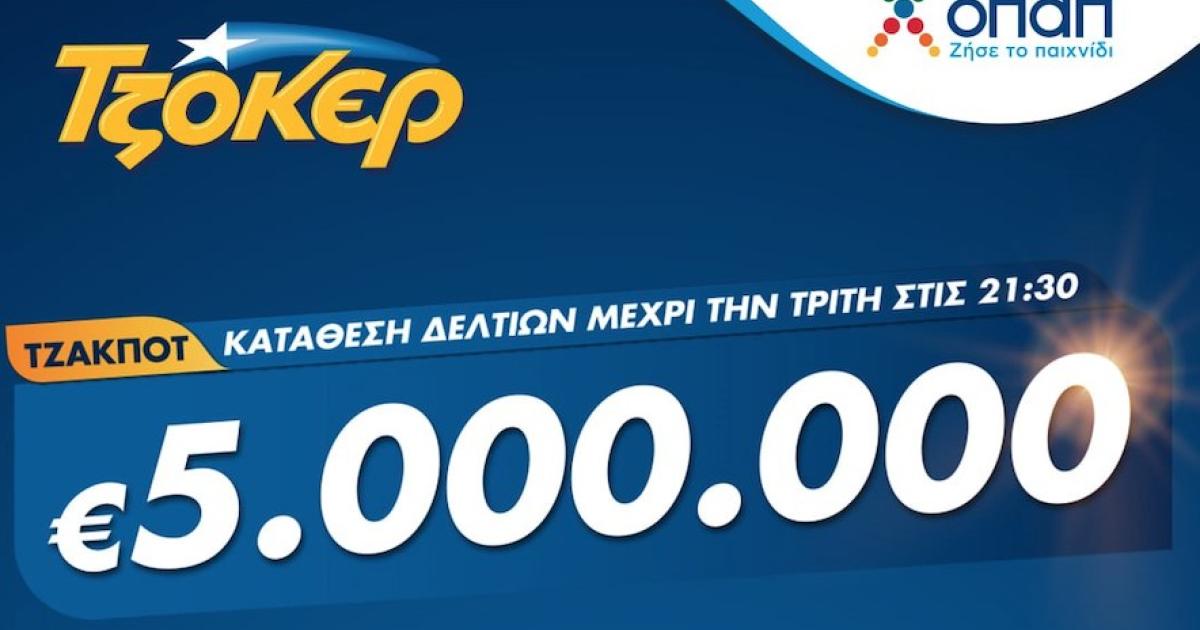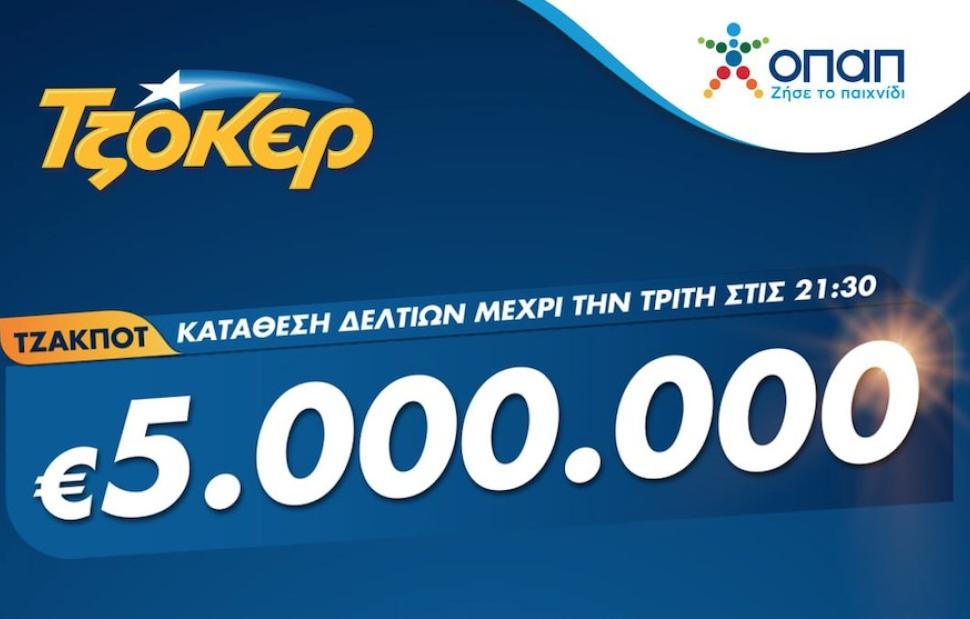 Η αποψινή κλήρωση του ΤΖΟΚΕΡ για τα 5 εκατομμύρια ευρώ θα πραγματοποιηθεί στις 22:00, όπως όλες οι εβδομαδιαίες κληρώσεις του παιχνιδιού κάθε Τρίτη, Πέμπτη και Κυριακή. Οι παίκτες μπορούν να την παρακολουθήσουν ζωντανά στο κανάλι του ΟΠΑΠ στο YouTube, στο tzoker.gr ή στο ΤΖΟΚΕΡ app.