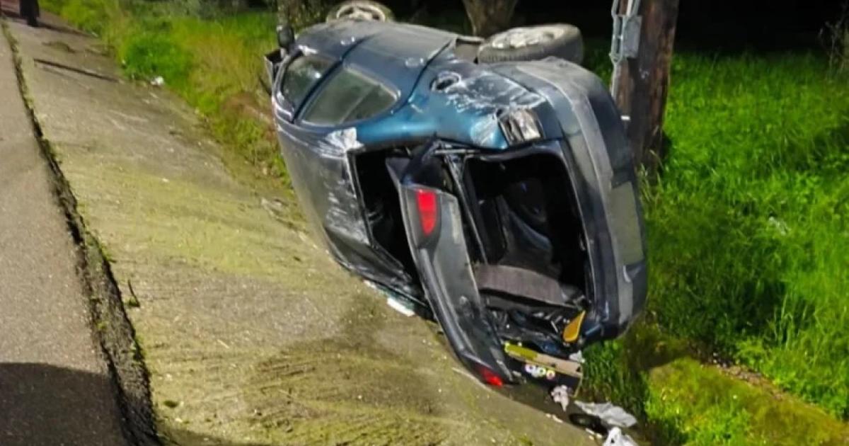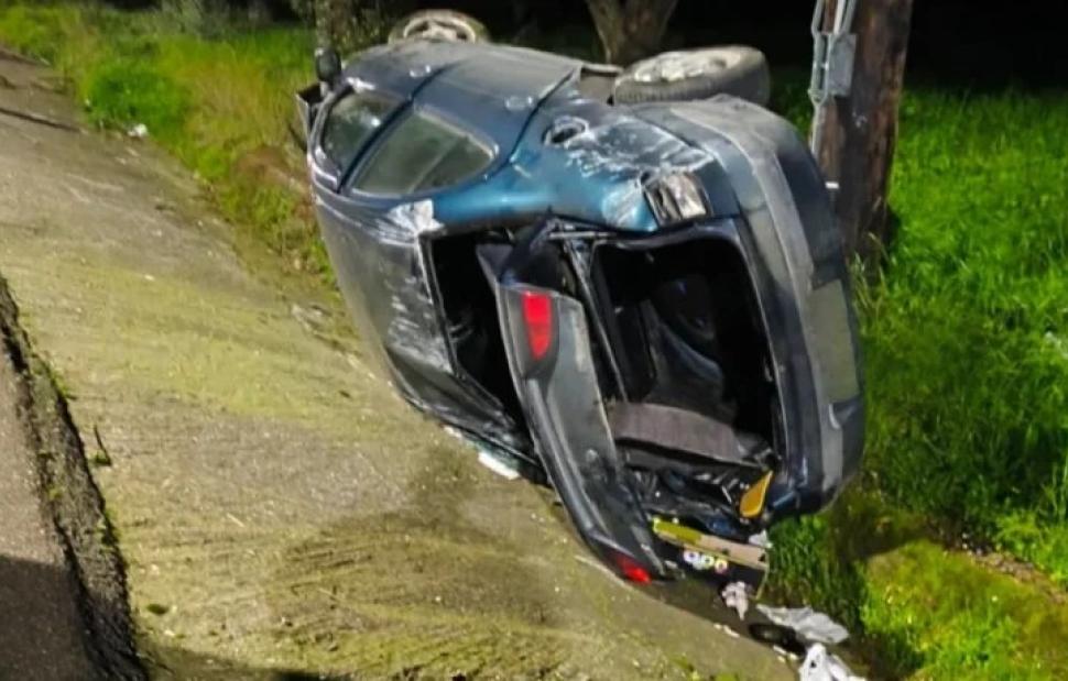 Το ΙΧ αυτοκίνητο βγήκε εκτός πορείας και κατέληξε στον τσιμέντινο αύλακα απορροής ομβρίων στην άκρη του δρόμου όπου ανατράπηκε.