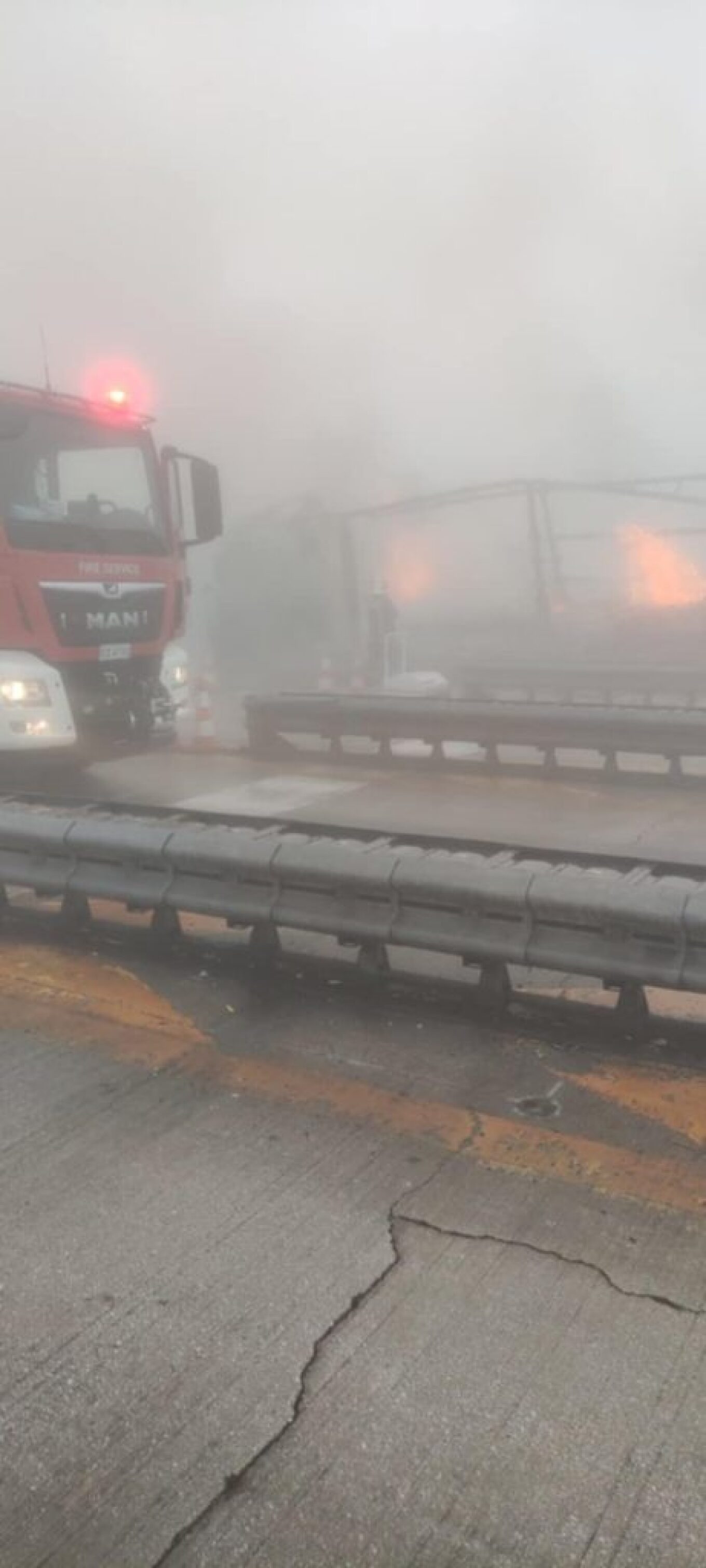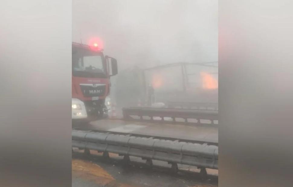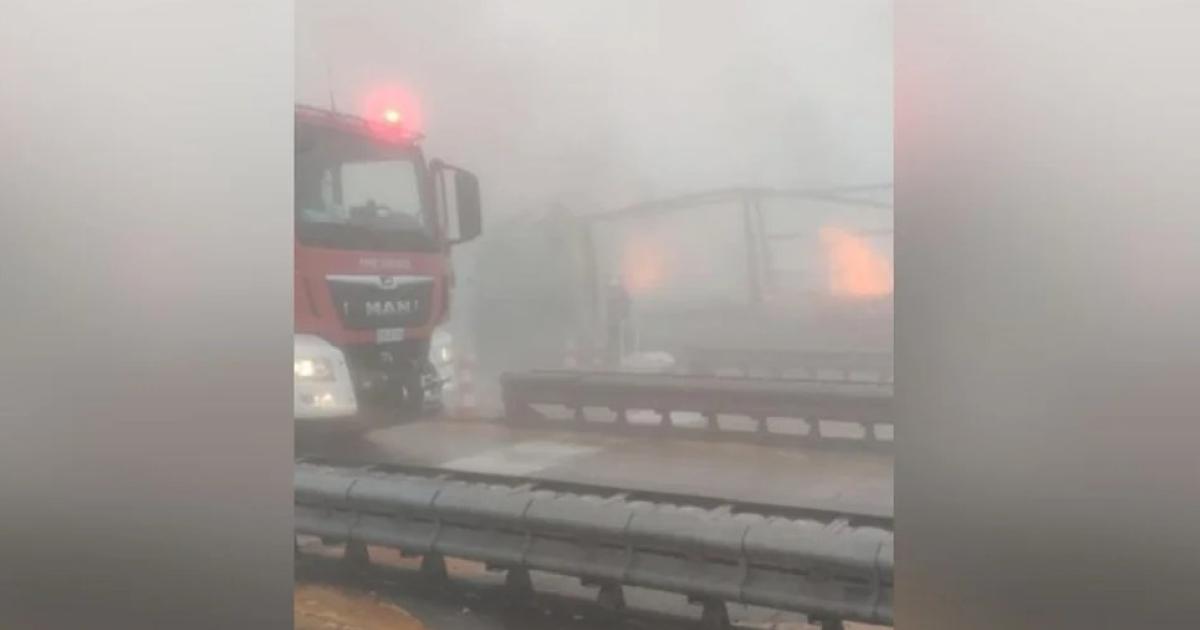 Σύμφωνα με πληροφορίες, το φορτηγό, κινούμενο υπό συνθήκες χαμηλής ορατότητας λόγω πυκνής ομίχλης, προσέκρουσε με σφοδρότητα σε δύο αυτοκίνητα πριν καταλήξει σε στηθαίο ασφαλείας και σε box των διοδίων Πολυμύλου, με αποτέλεσμα να ξεσπάσει φωτιά.