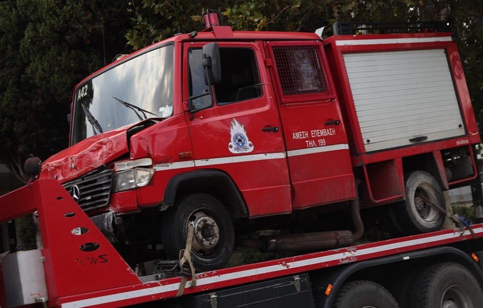 Στο πυροσβεστικό όχημα επέβαιναν τέσσερις πυροσβέστες, εκ των οποίων τραυματίστηκε ο ένας ελαφρά.