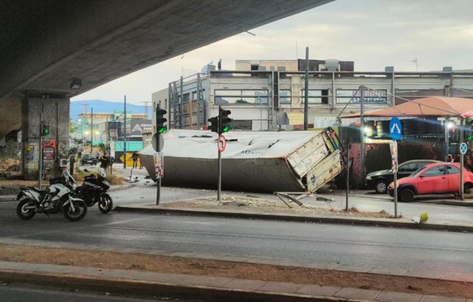 Σύμφωνα με το ρεπορτάζ, το φορτηγό έπεσε από ύψος δέκα μέτρων, ενώ όπως λέγεται χαρακτηριστικά ήταν ευτύχημα το ότι εκείνη την ώρα δεν περνούσε κάποιος πεζός ή όχημα από κάτω.