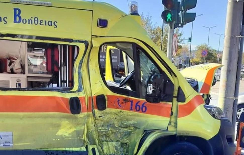 Στο βίντεο έχει καταγραφεί η στιγμή του τροχαίου, στο οποίο ενεπλάκη ένα ασθενοφόρο και μια μηχανή.