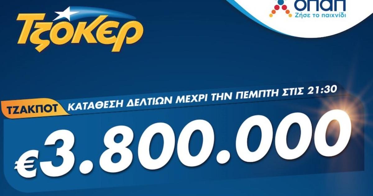 Όσοι επιθυμούν να διεκδικήσουν το μεγάλο έπαθλο του παιχνιδιού μπορούν να καταθέτουν τα δελτία τους έως τις 21:30 στα καταστήματα ΟΠΑΠ σε όλη την Ελλάδα ή μέσω διαδικτύου στο tzoker.gr και στην εφαρμογή ΤΖΟΚΕΡ.