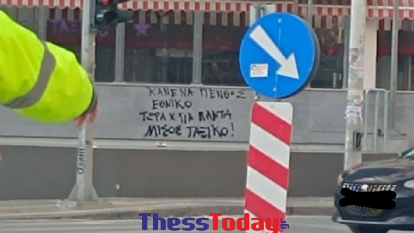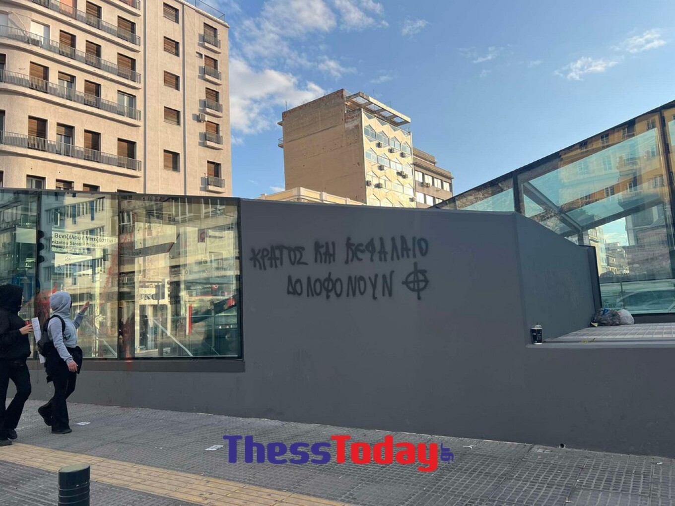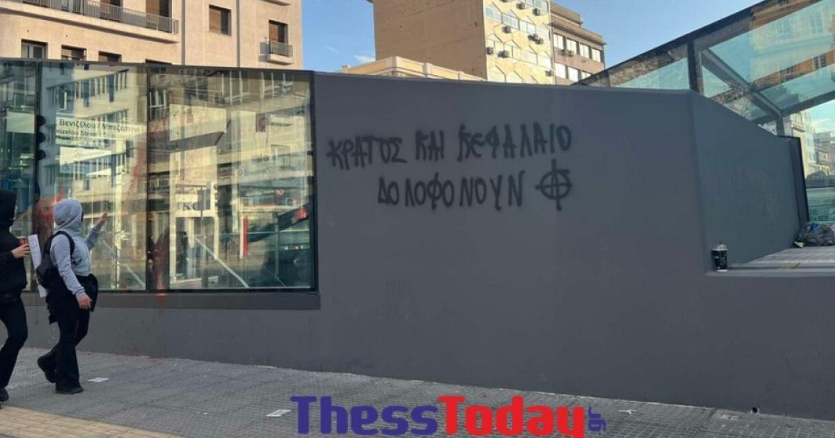 Πέταξαν κόκκινες μπογιές πάνω στις τζαμαρίες του σταθμού Βενιζέλου, στο κέντρο της πόλης, όπως φαίνεται σε φωτογραφίες του thesstoday.gr.