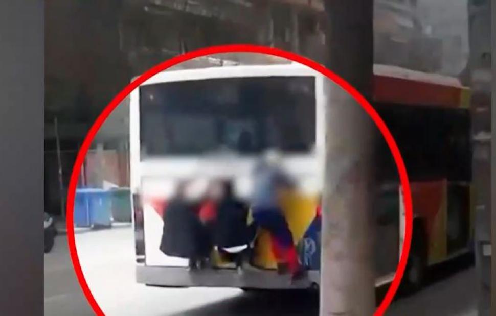 Νεαρός έχει σκαρφαλώσει σε συρμό του τραμ που διασχίζει με ταχύτητα την παραλιακή, την ιδιά ώρα φίλος του τον ακολουθεί οδηγώντας, τον καταγράφει με το κινητό του για να ανεβάσει το βίντεο στα social media.