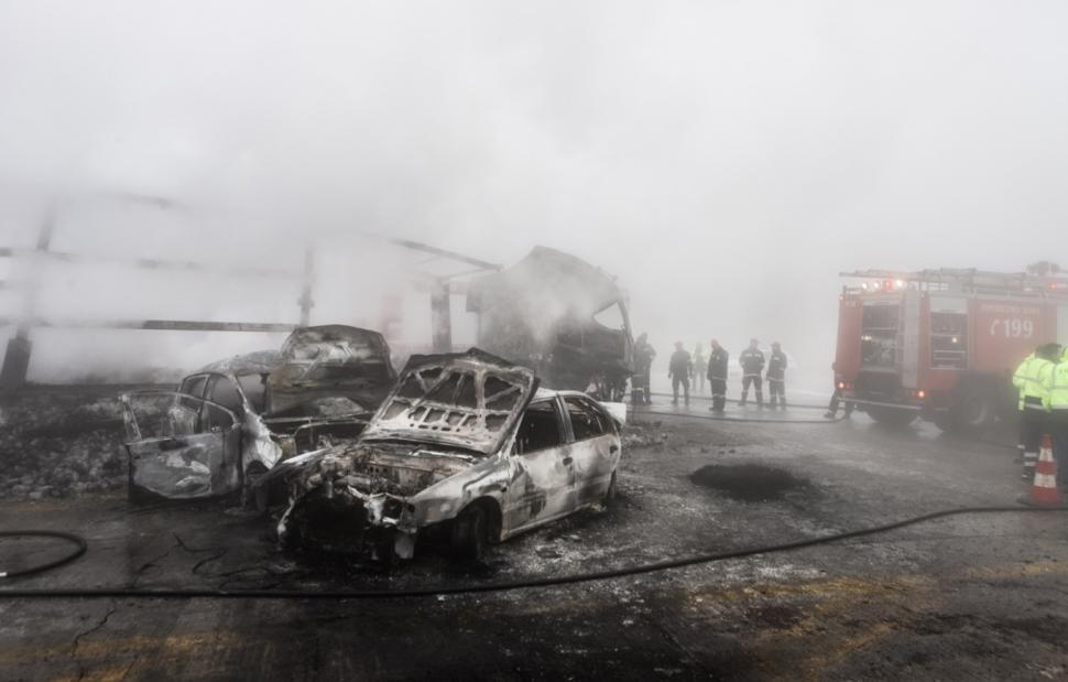 Όμως, αμέσως μετά έρχεται το φορτηγό με τον Ουκρανό οδηγό που προφυλακίστηκε. Με μεγάλη ταχύτητα παρασέρνει και τα δύο οχήματα και καταλήγει πάνω στο κουβούκλιο των διοδίων, με αποτέλεσμα να σκοτωθούν οι δύο επιβάτες του μεσαίου αυτοκινήτου, να τραυματιστούν άλλοι 5 και να ξεσπάσει πυρκαγιά.