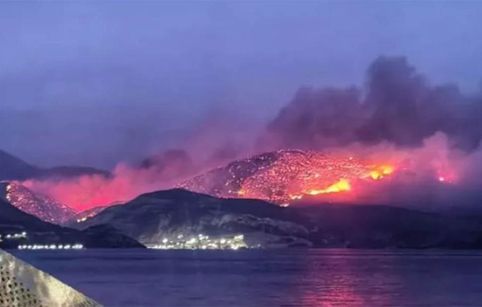 Ξεπερνά τα 10 χιλιόμετρα το μέτωπο των δύο πυρκαγιών στα παράλια της Βοιωτίας, στον Kορινθιακό Κόλπο.