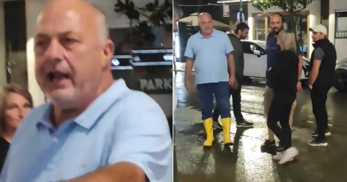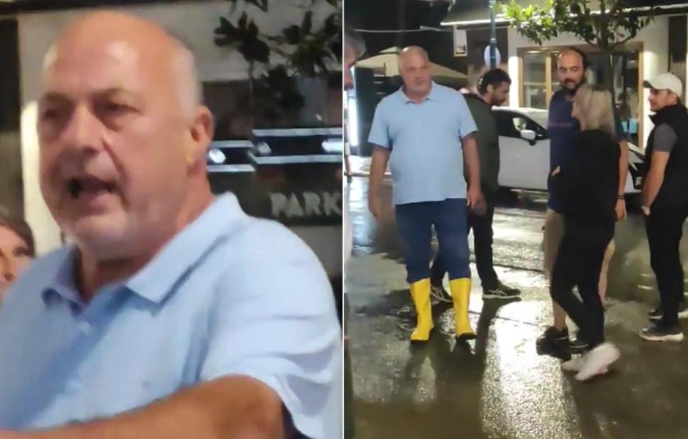 Εκείνη την ώρα από το σημείο περνούσε ο δικηγόρος Γιώργος Ταταριώτης, ο οποίος και βράχηκε, με μια γυναίκα να ακούγεται στο βίντεο να λέει πως «παιδιά τον έβρεξε επίτηδες», ενώ προτείνει στον βρεγμένο δικηγόρο να του κάνει μήνυση.