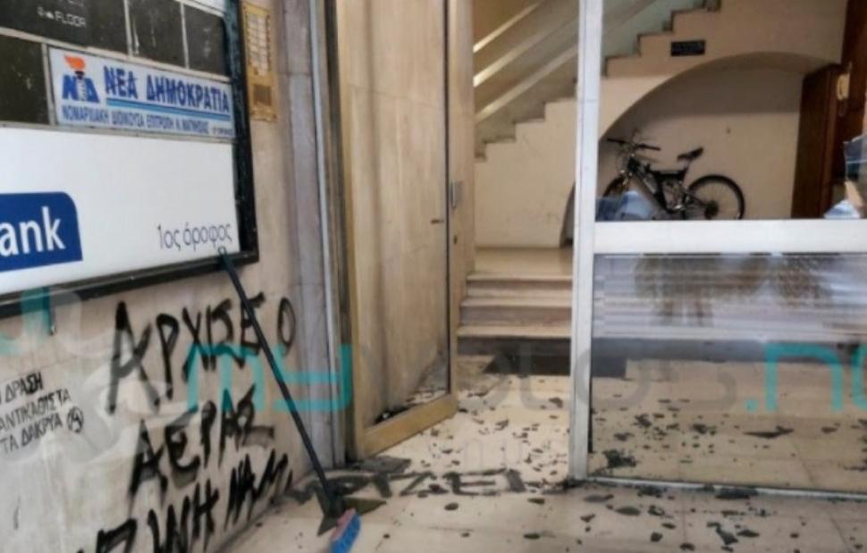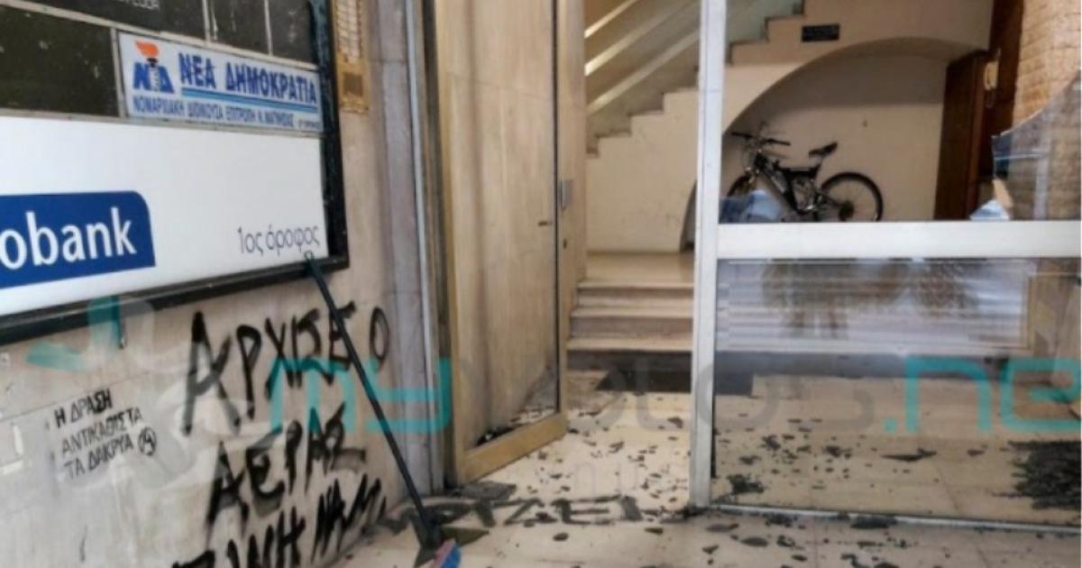 Οι ντελιβεράδες είχαν βρεθεί τυχαία στην οδό Ελευθερίου Βενιζέλου γύρω στις 11 τη νύχτα του Σαββάτου, όταν είδαν δυο αγνώστους με καλυμμένα χαρακτηριστικά να γράφουν συνθήματα στο κτίριο και να σπάνε με σφυρί την πόρτα και την τζαμαρία. Αμέσως επενέβησαν και ακινητοποίησαν έναν 37χρονο, ενώ ο δεύτερος διέφυγε τρέχοντας.