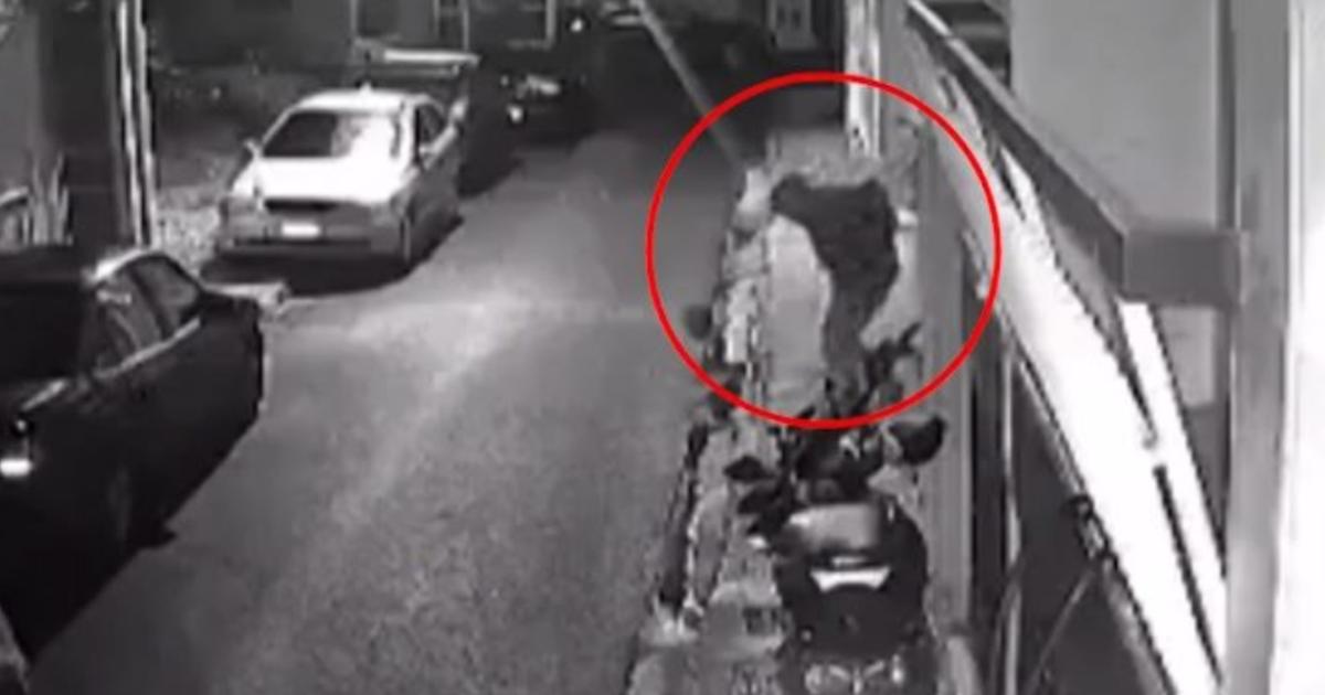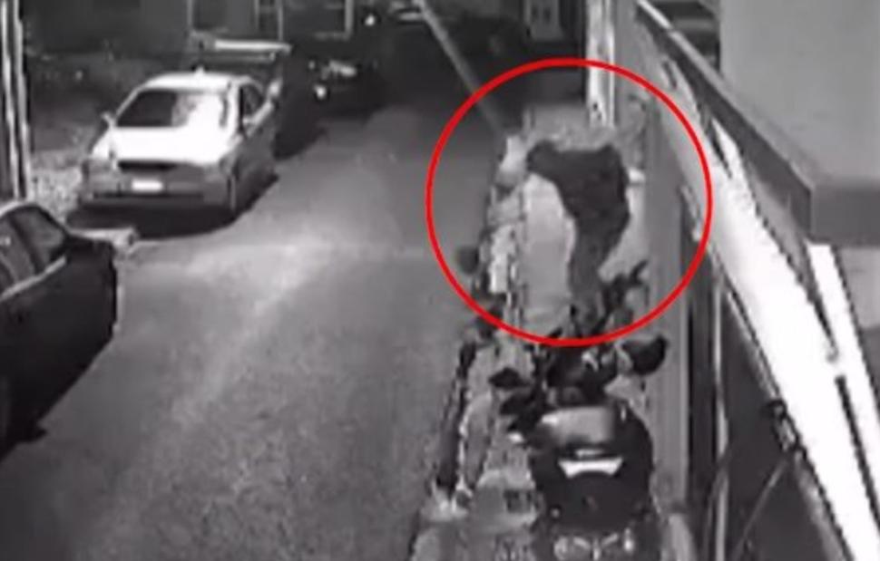 Ο νεαρός μπαίνει σε πυλωτή πολυκατοικίας και για λίγα δευτερόλεπτα ακούγονται οι ήχοι από τα χτυπήματα και οι κραυγές της γάτας, που ξεσηκώνουν τους ενοίκους.