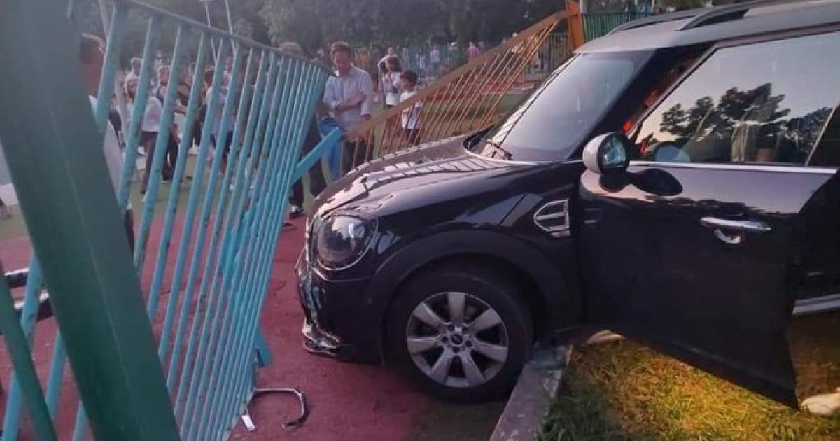 Ο οδηγός έχασε τον έλεγχο του του οχήματος με σέρβικες πινακίδες και ακολούθησε μια τρελή πορεία και τελικά έπεσε στα κάγκελα της παιδικής χαράς όπου σταμάτησε.