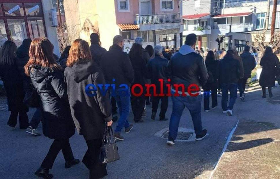 Σε κλίμα οδύνης αλλά και οργής πραγματοποιήθηκε η εξόδιος ακολουθία του 43χρονου Σάκη -που δολοφόνησε στη Χαλκίδα η 39χρονη Π.Ρ. το πρωί του Σαββάτου 20 Ιανουαρίου- στον Ιερό Ναό του Αγίου Αθανασίου στα Λουκίσια.