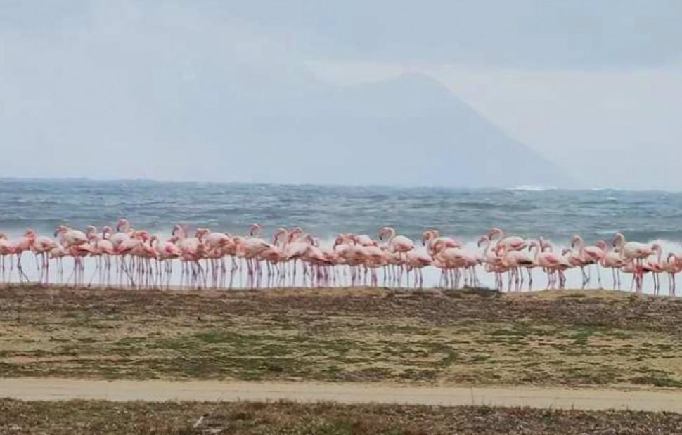Από τις αρχές Νοεμβρίου εκατοντάδες φλαμίνγκο επέλεξαν και φέτος να διαχειμάσουν σε ένα άλλο σημείο της Χαλκιδικής, στο μικρό παράκτιο υγρότοπο του Αγίου Μάμα με στάσιμα νερά, αμμοθίνες και καλαμώνες.