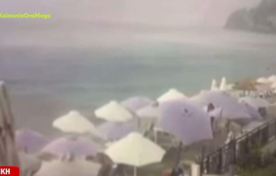 Κάμερα παραλιακού καταστήματος καταγράφει την στιγμή που οι θυελλώδεις άνεμοι χτυπούν την περιοχή, με αποτέλεσμα ομπρέλες του beach bar να ξηλώνονται και να παρασύρονται.