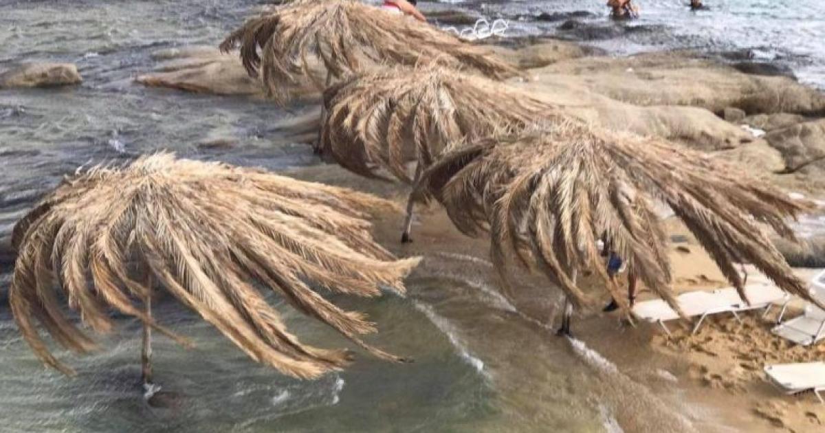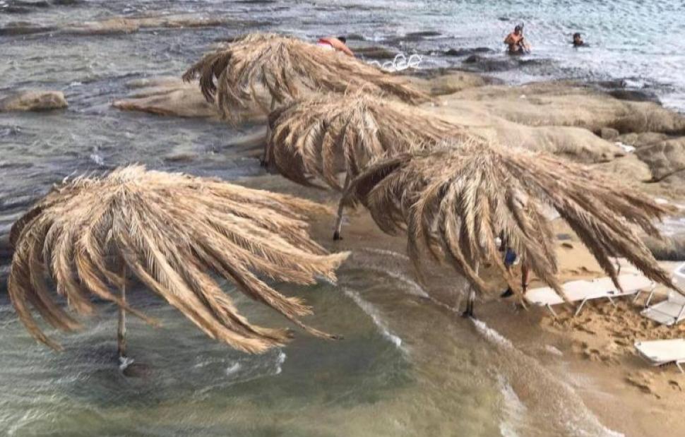 Συγκεκριμένα στη Συκιά, ο δυνατός αέρας σε συνδυασμό με τη βροχή τα πήρε όλα και τα… σήκωσε στην παραλία Τηγάνια.