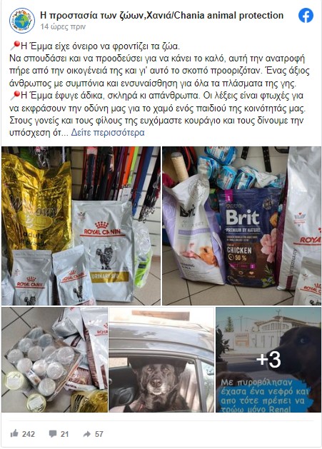 Νέα πράξη ανθρωπιάς από την οικογένεια της 21χρονης Έμμας που σκοτώθηκε σε τροχαίο στη Θεσσαλονίκη, καθώς μετά τη δωρεά οργάνων, παραχώρησαν χρηματικό ποσό σε φιλοζωική οργάνωση στα Χανιά, για την κάλυψη αναγκών.