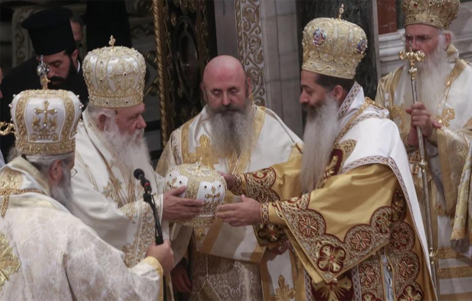 Κατόπιν, ο Προκαθήμενος της Ελλαδικής Εκκλησίας αναφέρθηκε στα δύο βασικά προβλήματα της εποχής μας σε σχέση με τον θεολογικό λόγο: την αποϊεροποίηση και την εκκοσμίκευση, που έχουν οδηγήσει στην πλήρη αποδόμηση από τους ανθρώπους και τόνισε πως «η Εκκλησία της Ελλάδος συνεκτίμησε την εμπειρία του σεβασμιωτάτου πλέον μητροπολίτου Περιστερίου βλέποντας σε εκείνον κάποιον που θα μπορούσε να φέρει εις πέραν την αποστολή του επισκόπου ως εικόνα του πατέρα, που θα μπορούσε να προστατεύσει και να αναδείξει το σωτηριολογικό περιεχόμενο του θεολογικού λόγου».
