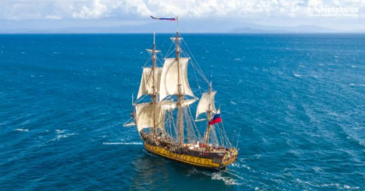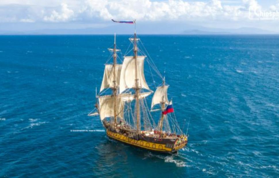 Το αντίγραφο της φρεγάτας κατασκευάστηκε το 1999 και έκτοτε ταξιδεύει στις θάλασσες ως εκπαιδευτικό πλοίο. Το ρωσικό ιστιοφόρο ξεκίνησε τη διεθνή ιστορικο – εκπαιδευτική του αποστολή στο Αιγαίο με την ονομασία «Φλόγα του Τσεσμέ» το Σάββατο, 9 Οκτωβρίου.