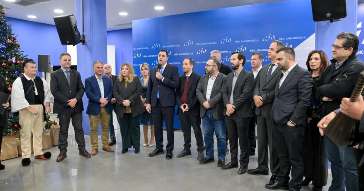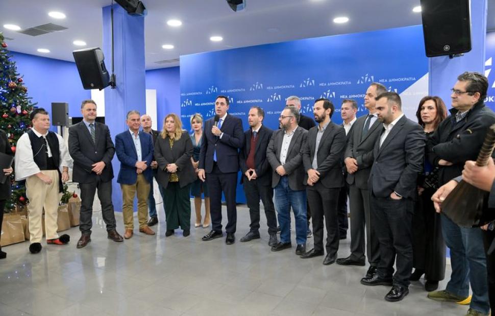 Γιορτή για τις ημέρες των Χριστουγέννων πραγματοποιήθηκε σήμερα στα κεντρικά γραφεία της Νέας Δημοκρατίας. Στελέχη και εργαζόμενοι του κόμματος αντάλλαξαν ευχές και άκουσαν τα Χριστουγεννιάτικα κάλαντα από την Ένωση Ηπειρωτών Περιστερίου «Ο Πύρρος».