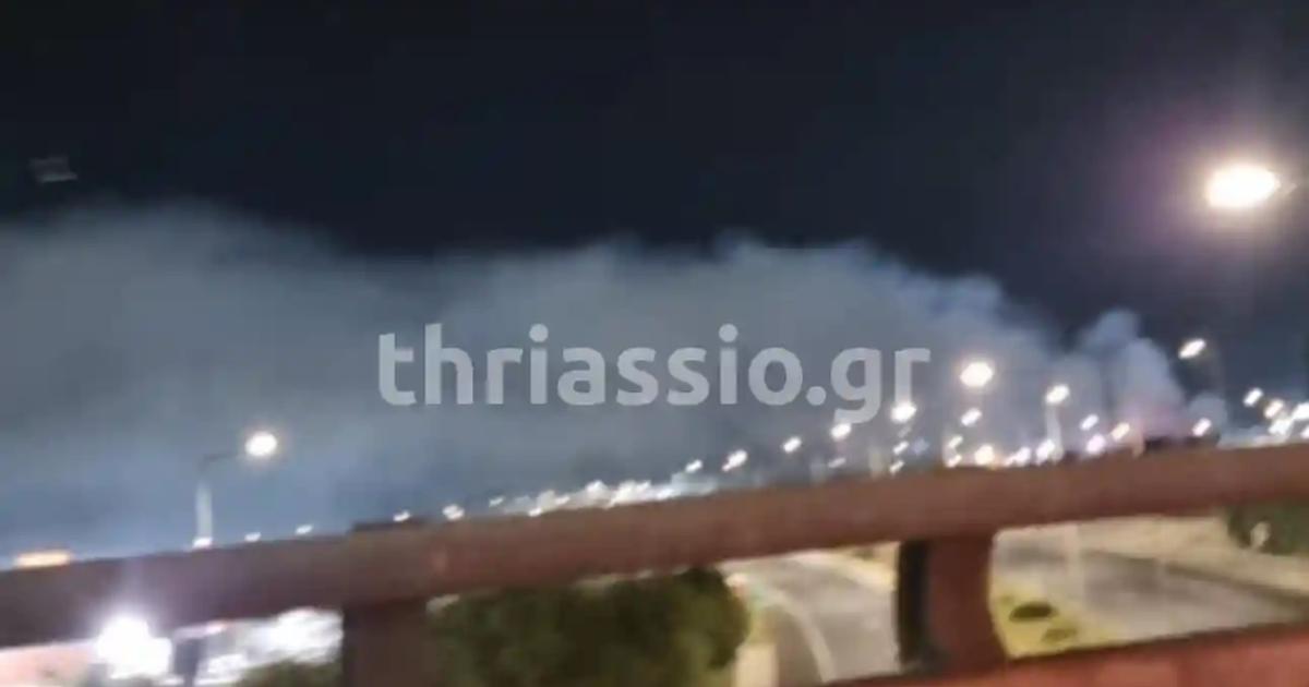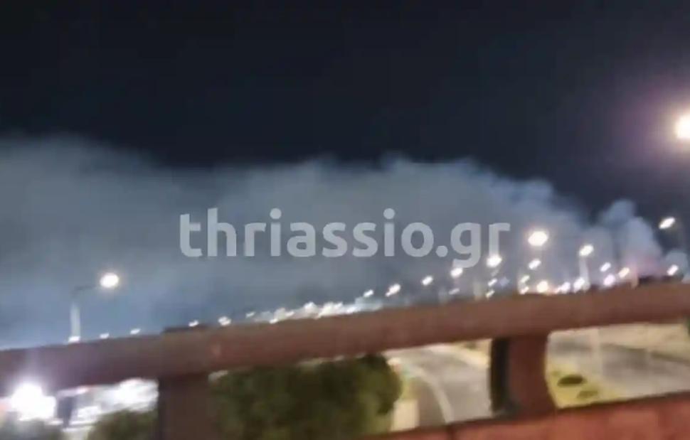 Το thriassio.gr ανέφερε πριν από μερικές ώρες ότι ακούγονταν συχνές εκρήξεις, ενώ λευκοί καπνοί σκέπαζαν την Αττική Οδό και η μυρωδιά ήταν πολύ έντονη μέχρι την Ελευσίνα.