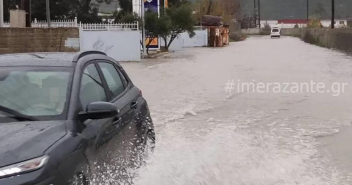 Η συνεχιζόμενη βροχόπτωση από νωρίς το πρωί προκάλεσε πλημμύρες σε κεντρικούς δρόμους του νησιού, ενώ τα προγνωστικά μοντέλα δείχνουν πως ο καιρός θα αγριέψει από το βράδυ.
