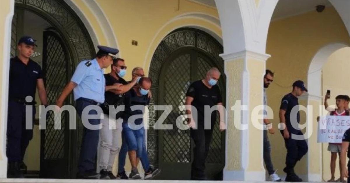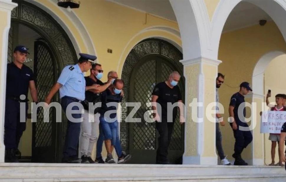 Ο 49χρονος παρουσία ισχυρής αστυνομικής δύναμης οδηγήθηκε από την πίσω πόρτα του Δικαστικού Μεγάρου Ζακύνθου στο γραφείο του ανακριτή για να απολογηθεί.