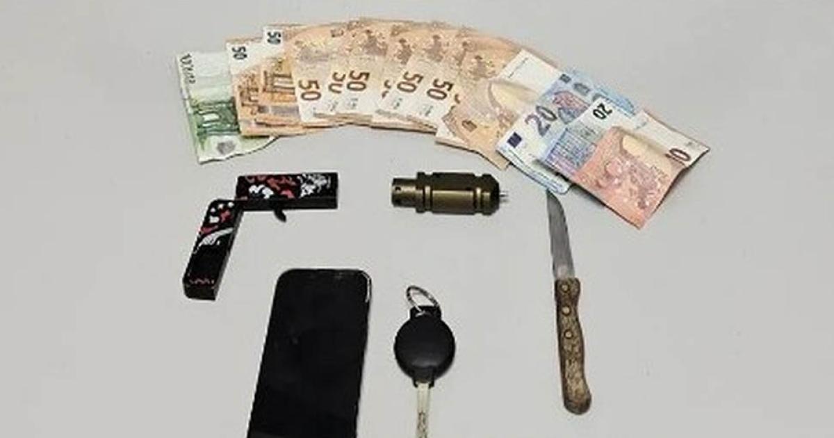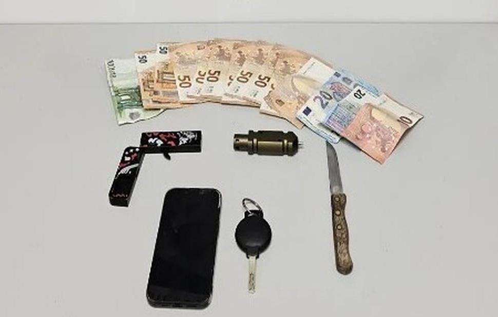 - μαχαίρι και πλαστικό γάντι που είχαν χρησιμοποιηθεί κατά τη διάπραξη της ληστείας στο πρακτορείο τυχερών παιχνιδιών,