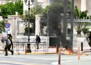 Επεισόδια με μολότοφ έγιναν στις συγκεντρώσεις στο κέντρο της Αθήνας. Oι διαδηλώτες πέταξαν μπογιές στο κτίριο της Τράπεζας της Ελλάδος, ενώ η Αστυνο...