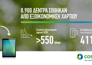 Σημαντική αποδεικνύεται η συμβολή των πελατών COSMOTE, που έχουν επιλέξει e-λογαριασμό αντί για έντυπο, στην προσπάθεια εξοικονόμησης χαρτιού που υλοπ...