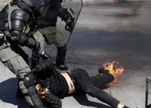 Ένας διαδηλωτής τραυματίστηκε στο πόδι από βόμβα μολότοφ, κατά τη διάρκεια των επεισοδίων που έλαβαν χώρα στην οδό Εγνατία, στο ύψος της Θεολογικής Σχ...