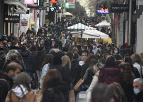 Συνωστισμός δημιουργήθηκε στην οδό Ερμού στο κέντρο της Αθήνας. Πολλοί ήταν οι πολίτες που πήγαν στην Ερμού προκειμένου να πραγματοποιήσουν τα ψώνια τ...