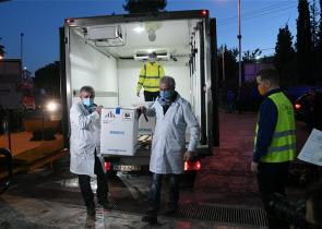 Στην Αθήνα έφτασαν στις 7 το πρωί τα πρώτα εμβόλια κατά του κορωνοϊού, συνοδεία ισχυρών αστυνομικών δυνάμεων. Οι πρώτες 9.750 δόσεις του εμβολίου των...