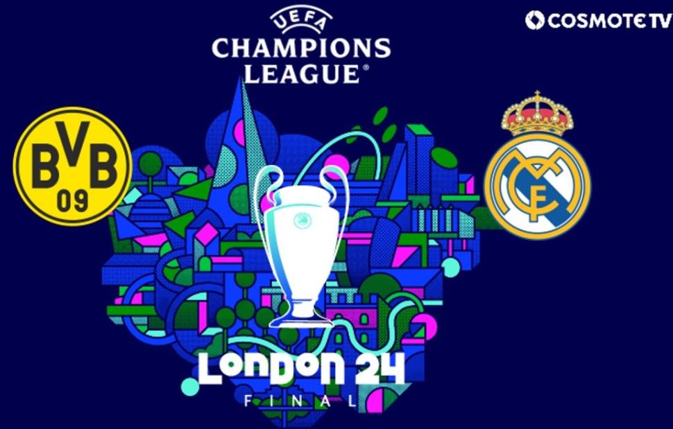 Το πολυπόθητο τρόπαιο του UEFA Champions League δίνεται για ακόμα μία χρονιά στην COSMOTE TV. Ο μεγάλος τελικός ανάμεσα σε Ντόρτμουντ και Ρεάλ Μαδρίτης θα μεταδοθεί το Σάββατο 1/6 στις 22.00 στο COSMOTE SPORT 1HD και ταυτόχρονα σε 4Κ ανάλυση στο COSMOTE SPORT 4K, σε περιγραφή Σωτήρη Κωσταβάρα. H δημοσιογραφική ομάδα της COSMOTE TV έχει ετοιμάσει πλούσια κάλυψη, με ειδικές εκπομπές και όλο το ρεπορτάζ από τους απεσταλμένους της στο Λονδίνο, Σωτήρη Κωσταβάρα και Αντρέα Παλομπαρίνι.