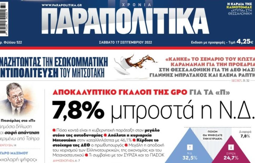 Αύριο, Σάββατο 17 Σεπτεμβρίου, η εφημερίδα ΠΑΡΑΠΟΛΙΤΙΚΑ κυκλοφορεί σε όλα τα περίπτερα της χώρας με πλούσια θεματολογία και πολλές αποκλειστικότητες. Αποκαλυπτικά θέματα, ρεπορτάζ και μεγάλες προσφορές για όλους τους αναγνώστες μας!
